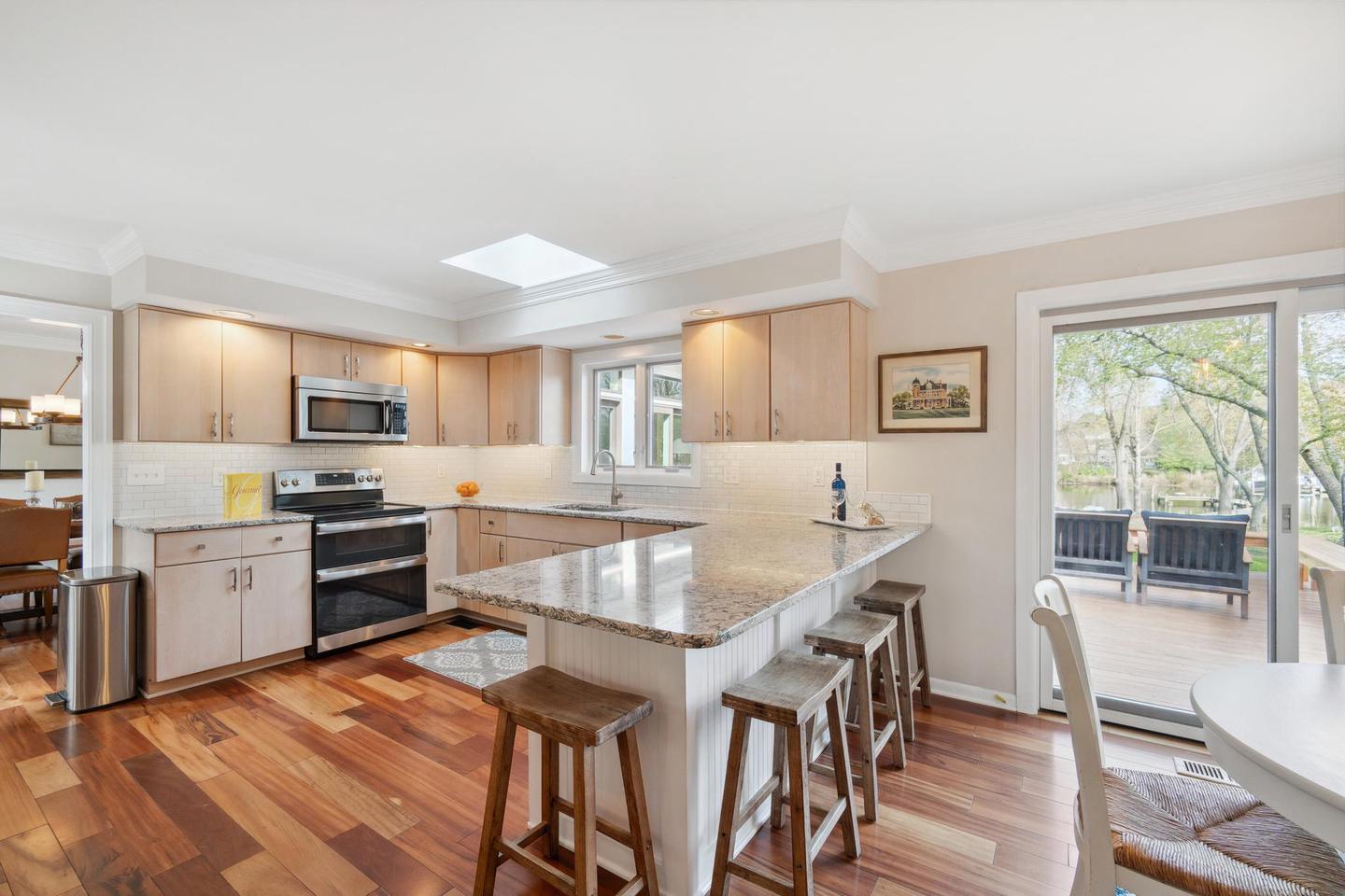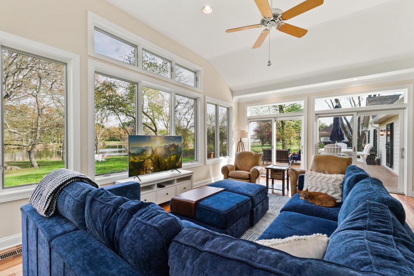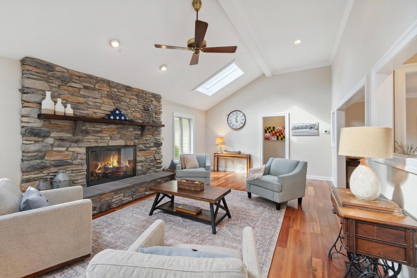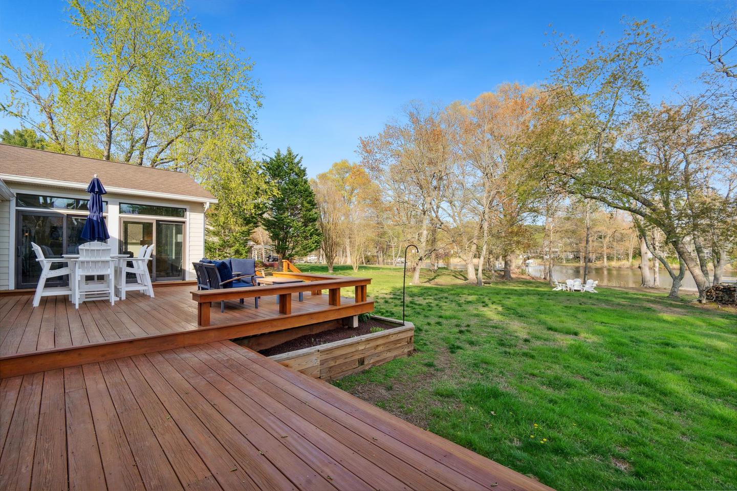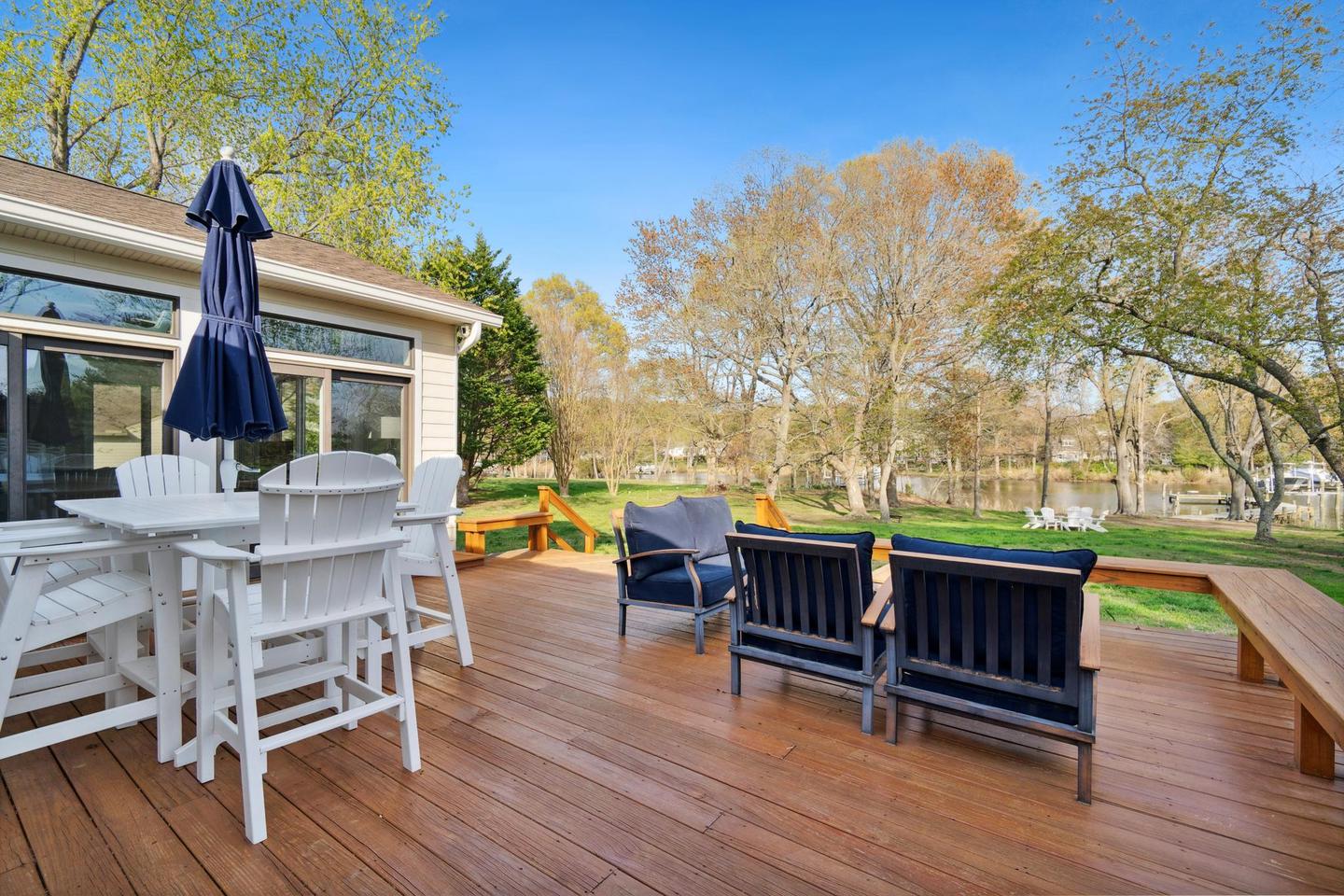 Welcome to this amazing one-level waterfront home nestled on the protected waters of Little Greenwood Creek in the coveted Prospect Bay community - sold for $1,265,000. This beautifully updated residence offers the perfect blend of comfort, style, and outdoor living. Step into the spacious living room featuring a vaulted ceiling and cozy gas fireplace—perfect for relaxing or entertaining. The bright and sunny kitchen boasts stunning quartz countertops, while the separate dining room provides the ideal setting for hosting family and friends. Enjoy panoramic water views from the sun-drenched sunroom, complete with a soaring cathedral ceiling. The waterside primary suite is a true retreat, offering an updated en suite bath and an enormous walk-in closet. A versatile bonus room adds even more flexibility—ideal as a home office, fitness room, or game room. Step outside to a large waterside deck and firepit area—perfect for outdoor gatherings and soaking in the serene surroundings. Recent upgrades include gleaming hardwood floors, a new roof, new gutters, and an elevated and re-decked pier with a boat lift. An oversized 2-car garage provides ample storage and convenience. Enjoy the exceptional amenities Prospect Bay has to offer, including a clubhouse with a restaurant, swimming pool, tennis and pickleball courts, marina, and an 18-hole golf course.